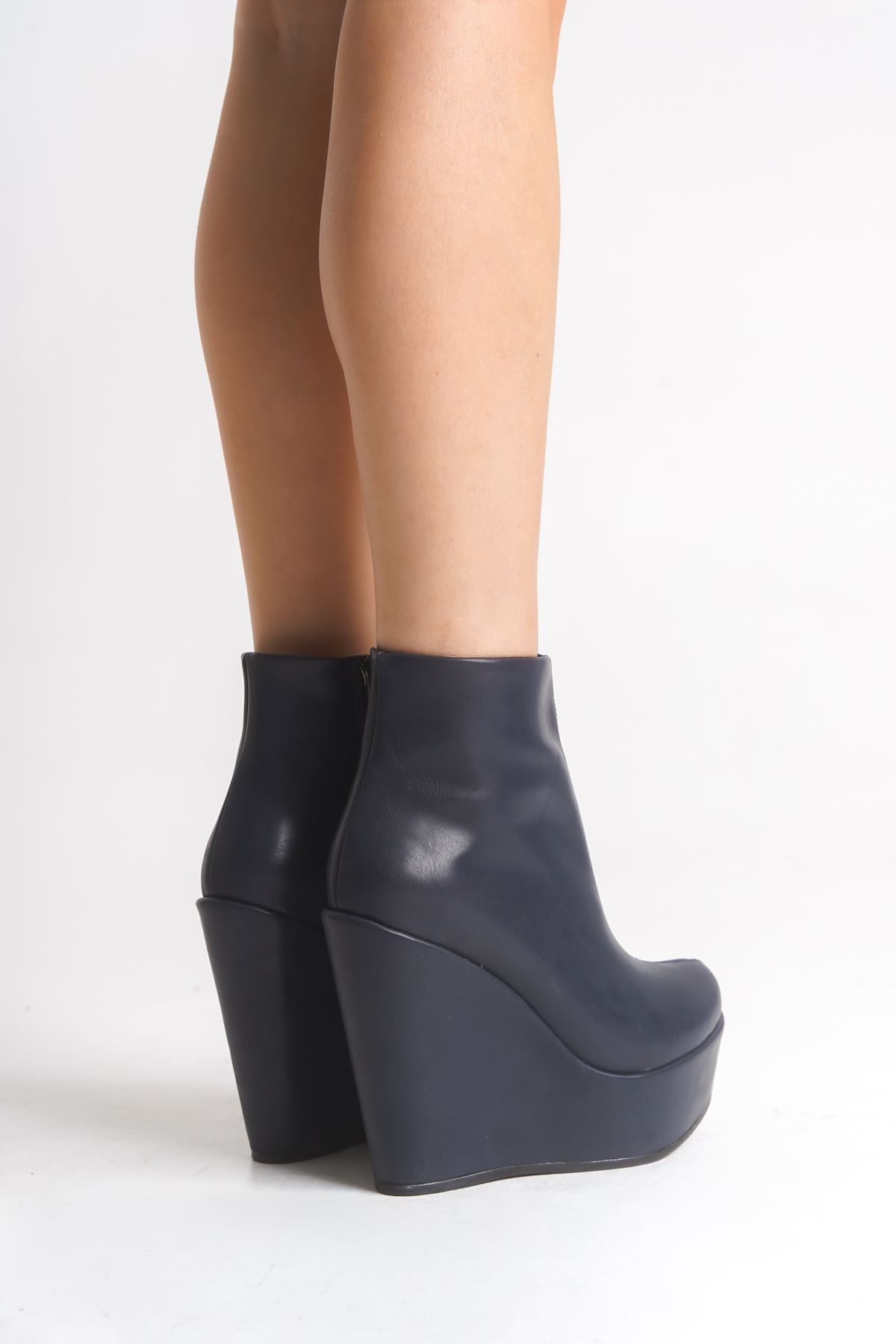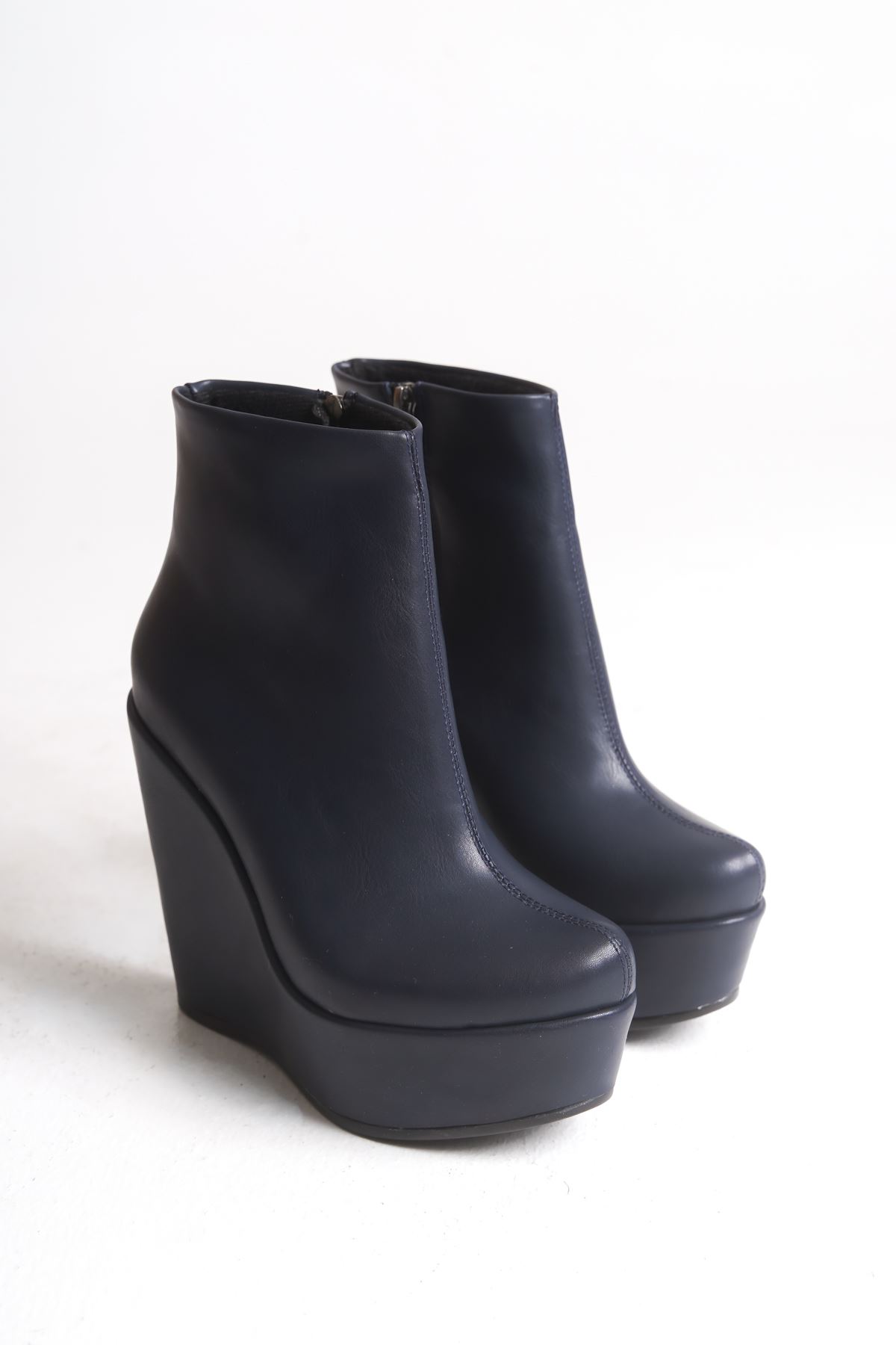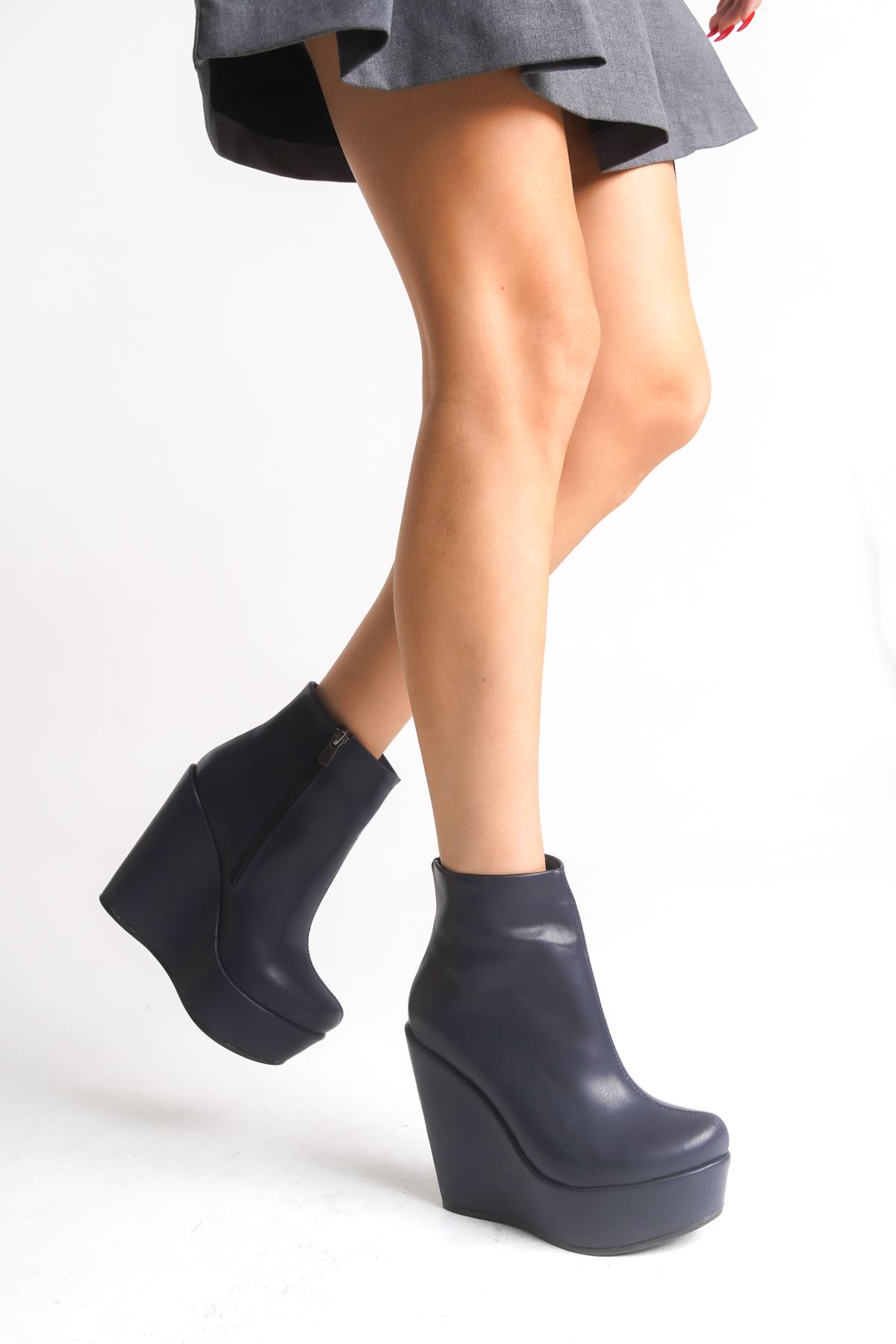 Eve ; Lacivert Mat Deri,12 cm Dolgu Topuklu Kadın Bot