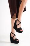 Alessi;Siyah Süet Süet ,12 cm Dolgu Topuklu Ayakkabı