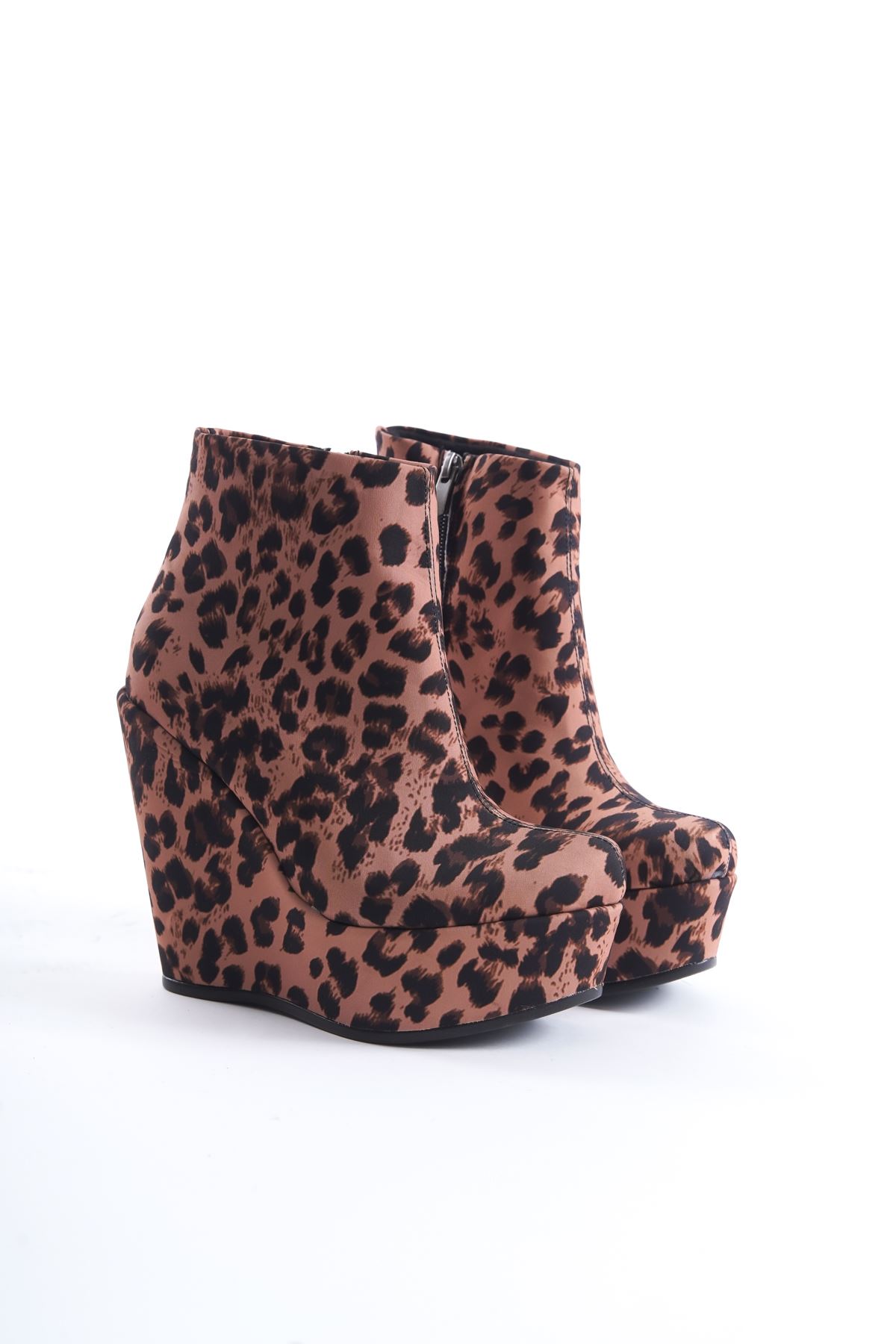 Eve ; Leopar Desenli,Dolgu Topuklu Kadın Bot